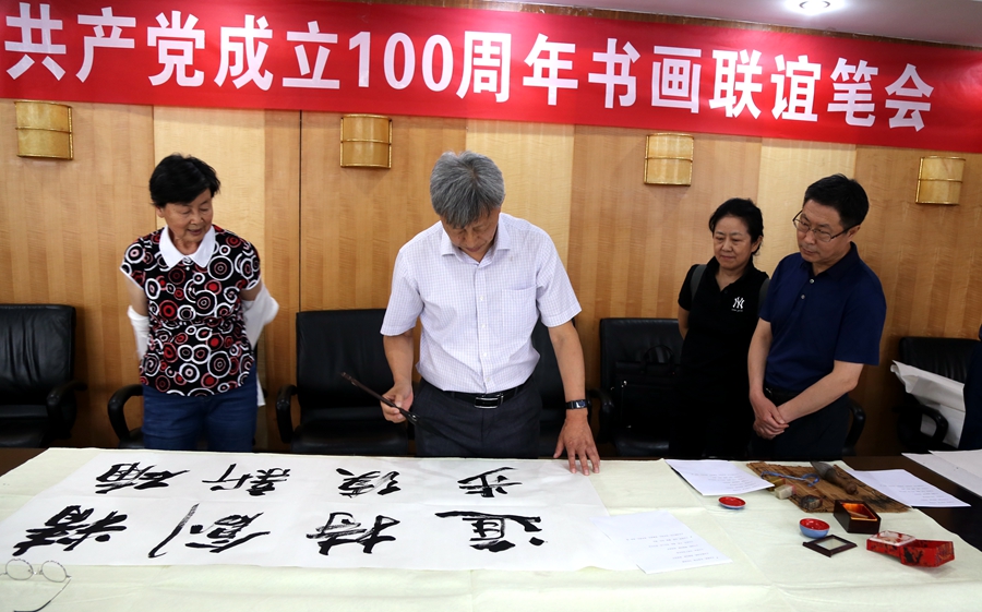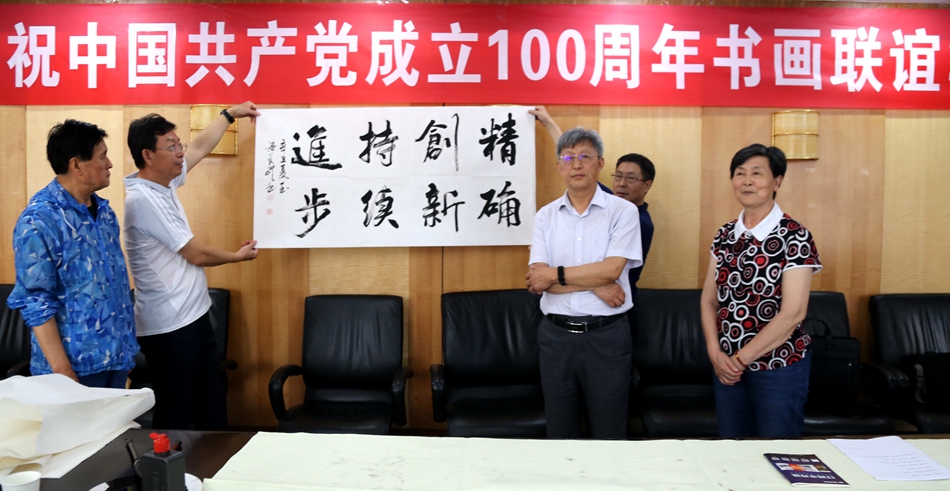 为庆祝中国共产党成立100周年,回顾党的奋斗历程,歌颂美好新时代,助力公司企业文化建设。6月24日,深圳前海信兴医疗科技有限公司、烟台市老年书画研究会、烟台市老干部志愿者协会共同举办“庆祝中国共产党成立100周年联谊书画笔会”。本次活动共有18位县处级退休老干部书画家参加。